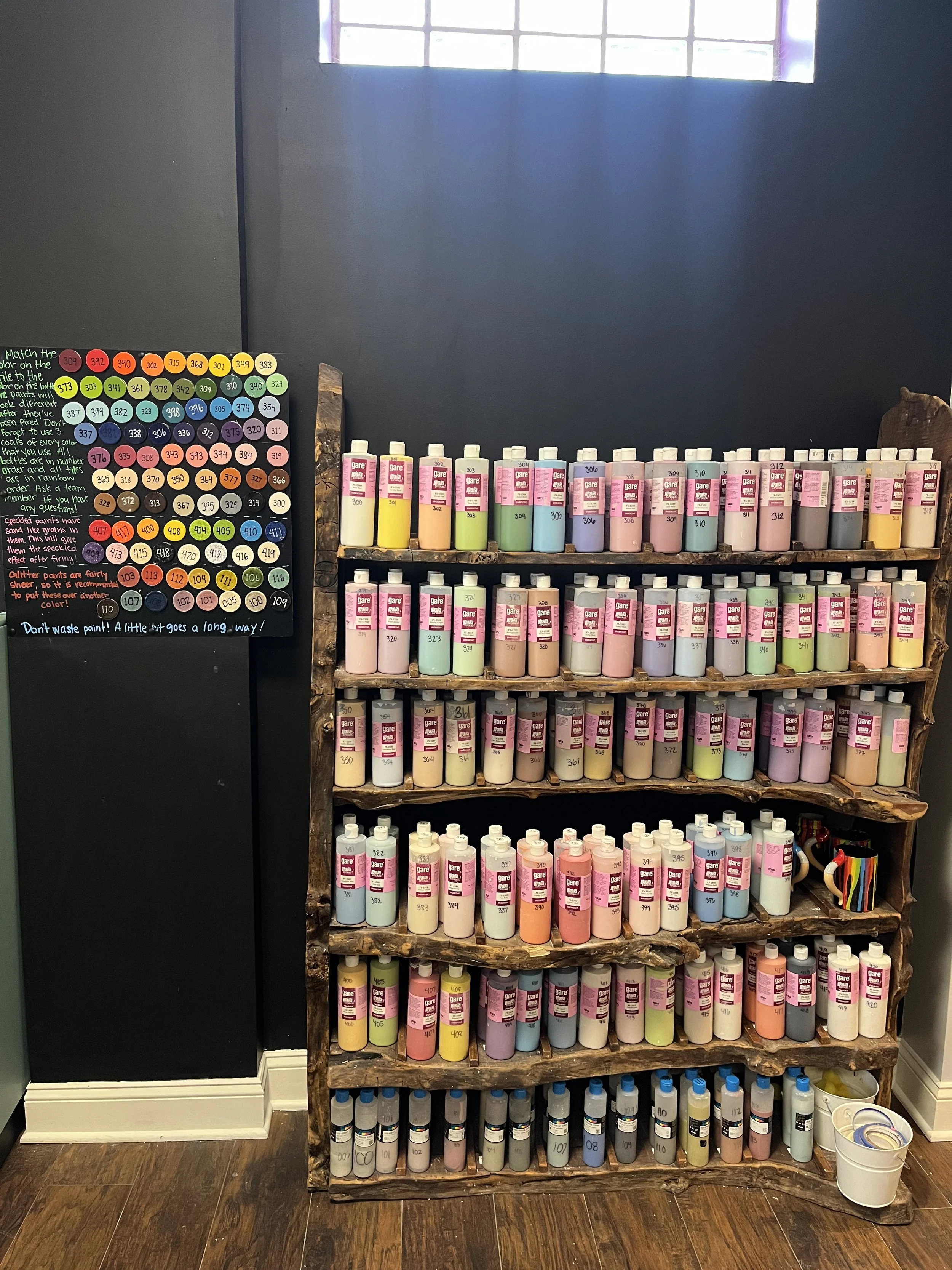 Our studio pricing is all-inclusive, so we do not have additional fees for studio time, paints, or firing. Our projects start at $20 and go up in price depending on the size and complexity of the piece.