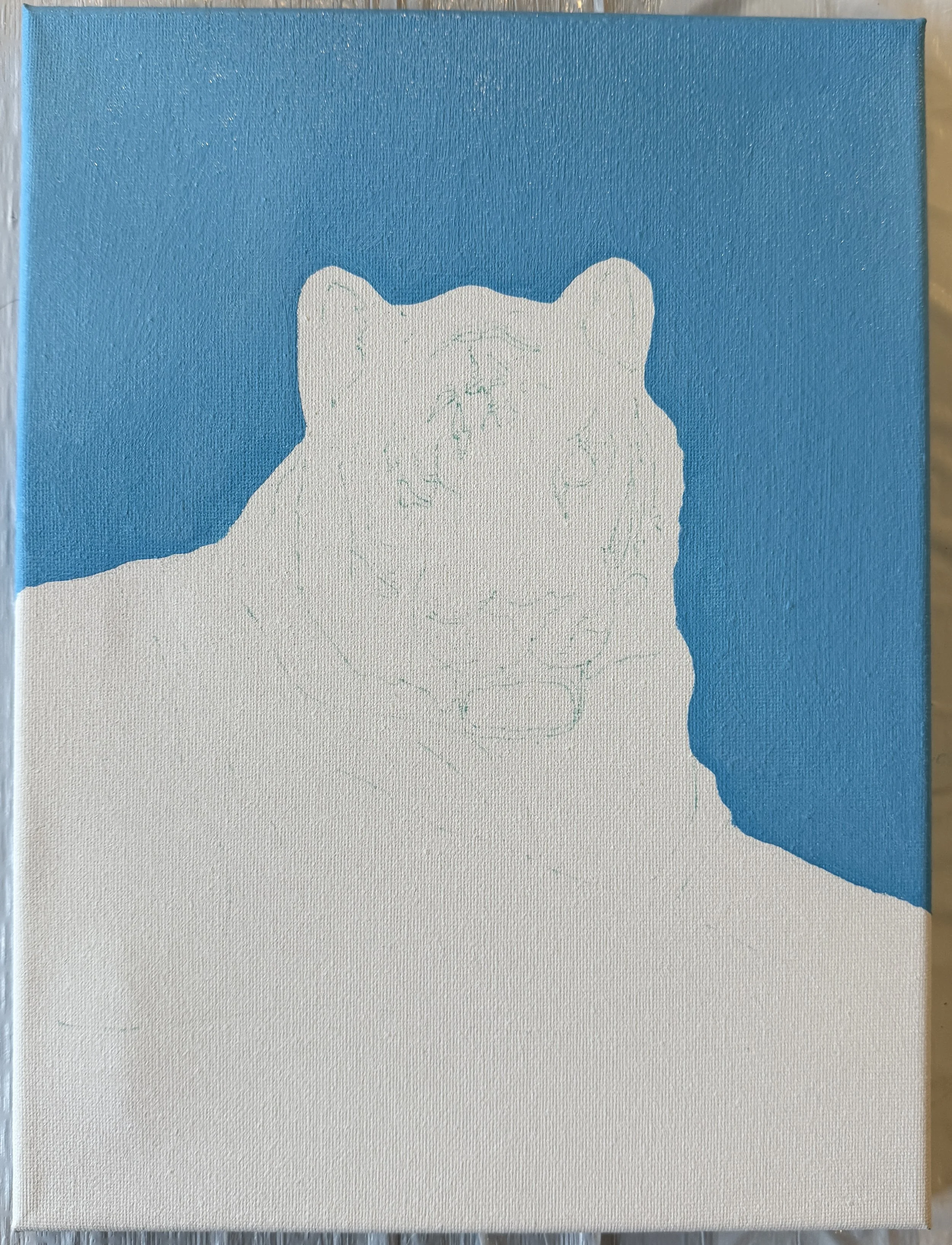 3- Paint the sky. Using your large and/or medium brushes, fill in the sky around Kya. Mix light blue with white until you have your desired shade.